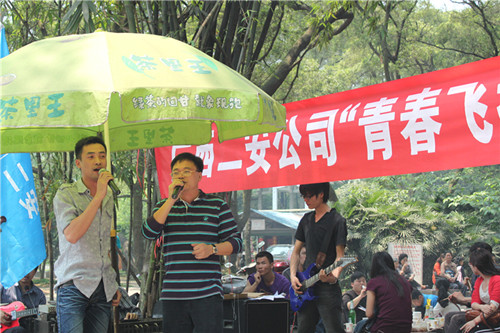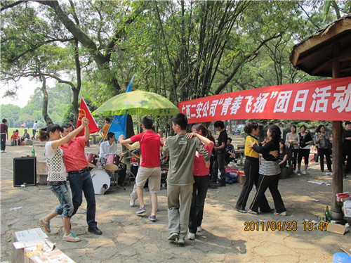 2011年4月23日,集團(tuán)二安公司團(tuán)委組織全公司各基層團(tuán)支部在柳州市雀山公園舉行了主題為“青春飛揚(yáng)” 露天音樂會(huì)團(tuán)日活動(dòng),迎接第92個(gè)“五四青年節(jié)”的到來。公司董事長、總經(jīng)理、黨委副書記黃鼎龍;公司黨委書記、紀(jì)委書記、工會(huì)主席藍(lán)錦?。还靖笨偨?jīng)理覃幼轍;公司副總經(jīng)理、第三分公司經(jīng)理莫雄清參加了此次活動(dòng)。并為榮獲集團(tuán)公司一屆二次職代會(huì)文藝晚會(huì)一等獎(jiǎng)的演員及榮獲公司2010年度“十佳青年崗位能手”頒發(fā)榮譽(yù)證書及獎(jiǎng)金?;顒?dòng)集表彰、素質(zhì)拓展訓(xùn)練、氣排球比賽,文藝表演等于一體,形式新穎,精彩紛呈。團(tuán)員青年們積極參與,各自表演自己的特長,唱歌、跳舞等節(jié)目層出不窮,活動(dòng)現(xiàn)場氣氛熱烈,高潮迭起,展現(xiàn)出了二安青年員工朝氣蓬勃、積極向上的精神面貌,吸引了不少圍觀者的眼球。此次活動(dòng)的開展,增進(jìn)了團(tuán)員青年們的溝通交流,企業(yè)凝聚力進(jìn)一步增強(qiáng),更好地促進(jìn)廣大團(tuán)員青年員工立足崗位,扎實(shí)工作,不斷創(chuàng)新,充分發(fā)揮團(tuán)員青年生力軍作用,在公司建功立業(yè)過程中體現(xiàn)青年人的人生價(jià)值,為公司健康快速發(fā)展奉獻(xiàn)青春力量!